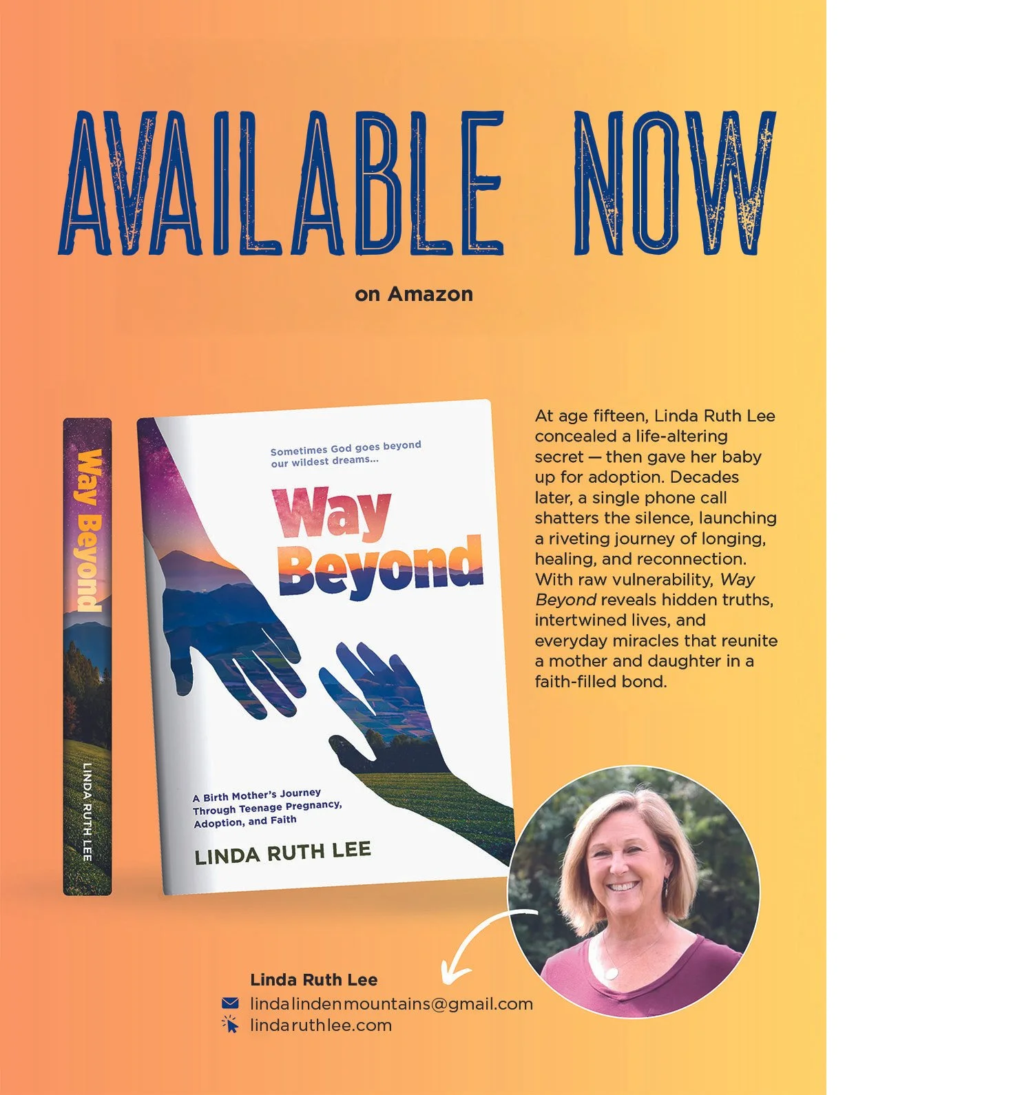 “With unflinching honesty and emotional depth, Linda Ruth Lee invites readers into her journey through shame, secrecy, and resilience. As a fifteen year old teenager facing an unexpected pregnancy in an unforgiving era, Linda makes a life-altering decision—one that reverberates through her family for years to come. But this is not just a story of loss or regret. It’s a testament to the power of love, forgiveness, and the incredible ways life can be fulfilling.”